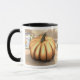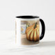 Esta ilustração de uma abóbora no balcão de uma cozinha faz um presente quente e caseiro ou uma adorável decoração de outono para você em casa. Uma imagem acolhedora para o outono, Dia das Bruxas e Ação de Graças.