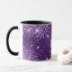 A girly and trendy monogrammed mug. A chic deep purple background decorated with faux glitter drops, dust. Personalize and add a name and monogram initials. Purple and white colored letters.