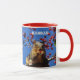 Uma foto de um Esquilo da Cauda da Raposa Vermelha comendo bagas vermelhas com o céu azul que é brilhante e colorido. Isso é brilhante e colorido que está em um MUG.