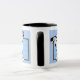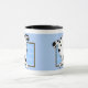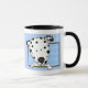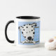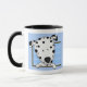 Nossa caneca Dalmatian bonito tem o cão manchado famoso tirado como uns desenhos animados! Sua cabeça está leve em um ângulo enquanto olha para fora curiosa. O fundo do quadro é azul listrado. Suas patas preto e branco estão na borda da moldura para retrato. Os presentes Dalmatian originais que caracterizam seu cão favorito produzem. Este design está disponível na outra mercadoria do amante do cão demasiado.