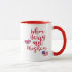 NewParkLane - Royal Wedding Mug, com uma citação divertida "Quando Harry encontrou Meghan", em tipografia de escrita vermelha, e as bandeiras do Reino Unido e dos Estados Unidos em forma de coração. Verifique se há itens correspondentes nesta coleção. Você tem desejos pessoais específicos de design? Sinta-se livre para me contactar!