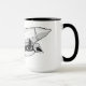 Um pinguim é representado com humor voando com uma mochila de foguete e vestindo um capacete.