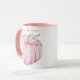Uma queda rosa e feminina e uma caneca temida santificada.