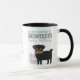 Adicione um nome para personalizar esta engraçada "Birthday Mug" para um negro Chihuahua Poodle Mix aka Chipoo Dog Mãe ou Pai de Cachorro. Mug apresenta um cachorro fofo alegando estar apenas guardando o bolo!