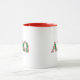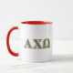 Caneca Qui letras verdes e vermelhas de Omega de Alphi