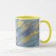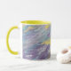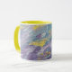 Quiet Reign is an abstract piece defined by its soothing, cool color palette and energetic brushwork. The painting features diagonal sweeps of soft lavender, tranquil aqua, and deep violet, punctuated by bold, shimmering metallic gold accents. The overall effect is one of serene motion, like a gentle rain shower illuminated by a hidden golden light. This artwork adds a touch of modern, peaceful sophistication to any space or product.