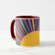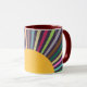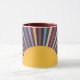 Um design simples e minimalista do sol de verão com raios em várias cores.