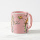 Bonito a rosa, essa caneca tropical apresenta uma ave aquosa e um modo ramificado no estilo oriental da chinoiserie. Cinco aves ouros percham em cinzas/ramos castanhos. Os designs foram inspirados por tecidos asiáticos antigos de cerâmica e seda. Num fundo cor-de-rosa, para um olhar moderno! Trabalho de arte e design únicos de Tuzi Williams.