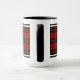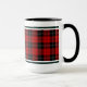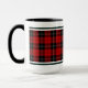 Uma caneca de café no tartan para Clan Ramsay, Ramsey, e suas sebes incluindo Dalhousie. Padrão de xadrez escocês preto e vermelho de 1842, com sotaques brancos.