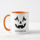 Celebre o Dia das Bruxas em estilo com esta caneca de café, cara de abóbora, feminina e personalizada com um nome. Esta design de lanterna divertida tem um sorriso de dente brilhante e pestanas fabulosas!