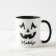 Celebre o Dia das Bruxas em estilo com esta mog de café, cara de abóbora, feminina personalizada, que pode ser personalizada com um nome na escrita negra. Esta design de lanterna divertida tem um sorriso de dente brilhante e pestanas fabulosas!