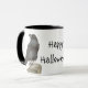 Um Raven empoleirado em pedra na Torre de Londres adora esta bonito caneca de Halloween! Personalize alterando o texto, se desejar. Obrigados ao fotógrafo Gustav Sommer em Pixabay para fazer de sua bela fotografia disponível para minha referência artística.