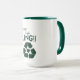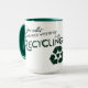 Um texto humorístico que diz: "Você o chama de 'Voltando com meu ex', eu o chamo de... Reciclagem!" Abaixo do texto, há um símbolo de amor reciclagem.
