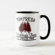 Get your holiday hot chocolate or coffee on with this big 15oz black and white mug with a rustic, country red and black pattern on a stand of six Christmas trees. Above the trees it says, "Farm Fresh" and below the trees the top line says, "Christmas Trees" with the three words below that say, "FIR - SPRUCE - PINE" on it.