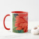 Esta caneca bonito mostra minha fotografia original de uma margarida de Gerbera vermelha em um jardim, estilizada em uma técnica de pintura aquosa para uma aparência artística. A alça e o dentro da xícara são um tom vermelho para complementar o trabalho de arte. Estas são canecas de 11 onças (no entanto, podem ser melhoradas se quiserem), apenas do tamanho perfeito para o café ou chá em casa - ou mesmo chocolate quente! Ele faria um presente de excelente, e você pode colocar pacotes de café, bolsas de chá ou dentro de chocolate quente. Uma outra ideia de presente é colocar uma pequena planta nela para torná-la mais especial para o seu amado.
