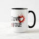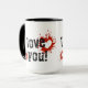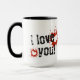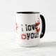 Diga a alguém especial que saiba como você se sente com esta caneca vermelha. A carta negra 'Eu te amo!' elogia o design vermelho do coração.