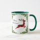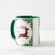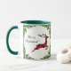 Esta caneca de café festiva e colorida de Natal apresenta uma rena voadora de xadrez vermelha festiva, emoldurada em galhos verdes e brilhantes. Perfeito para sua comemoração de Natal! Personalize com seu próprio Cartões de natal!