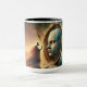 Uma caneca de café que provoca o pensamento e apresenta um espelho surreal rachado, revelando dois rostos — um sereno, um fraturado. Um design simbólico explorando verdades ocultas e autorreflexão. Perfeito para pensadores profundos e amantes da arte surreal.