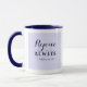 Esta linda caneca azul apresenta versos Bíblias sobre regozijo junto com o nome personalizável no verso.