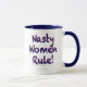 T-shirts e presentes que proclamam a "Regra das Mulheres Desagradáveis". A frase dá poder às mulheres fortes, resolutas, focadas, sérias, destemidas e dedicadas.