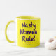 T-shirts e presentes que proclamam a "Regra das Mulheres Desagradáveis". A frase dá poder às mulheres fortes, resolutas, focadas, sérias, destemidas e dedicadas.