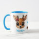 Celebre a temporada de férias com esta caneca festiva com jante azul e manípulo com cartoon cartoon carinhoso de veado-bebê bonitinho com galhadas e poinsettias escondidas nos ouvidos. O nome e Reindeer Love estão escritos em azul-céu. A xícara perfeita para você, ou como um presente pensativo, este pombo capricho faz uma manutenção cuidadosa por anos. Aproveite este design floral! Personalizar alterando o texto, a fonte, a cor da fonte ou removendo o texto. Você pode até transferir este design para outros produtos. Verifique a ForestBabies Xmas Deer Collection para produtos correspondentes. 🎄 🦌