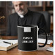 Todo padre vai adorar ter sua própria caneca personalizada com o colarinho do padre católico. O nome e o colarinho branco são impressos em ambos os lados das canecas. Todo o texto e as fontes podem ser modificados.