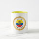 A bandeira nacional do Equador é infundida em forma circular. Nos anéis externos, estão seis estrelas decorativas e o nome do país em inglês e espanhol.