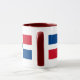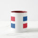 A bandeira da República Dominicana apresenta uma cruz branca centrada que se estende até as bordas e divide a bandeira em quatro retângulos - os de cima são azuis (lado do assento) e vermelhos, e os de baixo são vermelhos (lado do assoalho) e azuis.