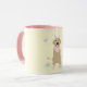 Uma bela ilustração de um cão que recupera o ouro vestindo orelhas de coelho e uma bonita bandana Páscoa. Cercados por ovos decorados de Páscoa, flores de primavera e borboletas.
