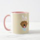 Uma bela ilustração de um cão que recupera o ouro vestindo orelhas de coelho e uma bonita bandana Páscoa. Cercados por ovos decorados de Páscoa, flores de primavera e borboletas.