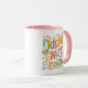 Esta caneca "Amigos sem Comida" apresenta uma citação com flores retrorreflectoras e animais de fazenda.