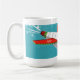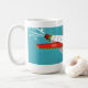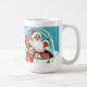 Esta caneca snazzy do Natal caracteriza uma ilustração do vintage de Papai Noel que entrega presentes em sua nave espacial. A caneca perfeita do divertimento para fãs de papai noel e de todas as coisas retros!