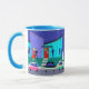 Esta caneca retro do Natal do partido dos desenhos animados do feriado p-lo-á no espírito do feriado. As características de design o exterior de uma casa moderna do meio século. Através do assoalho às paredes de vidro de turquesa do teto, nós podemos ver as silhuetas dos azuis marinhos de frequentadores festivos do partido. Há um casal que conversa na frente de uma árvore de Natal verde, que seja decorada com ornamento da cerceta. No lado oposto da sala, nós podemos ver que um homem da dança e o homem prolixo todos estão tentando evitar. O exterior da casa caracteriza uma porta vermelha animador com uma grinalda do feriado, uma lareira roxa de tamanho grande do tijolo, e as costas de luzes de Natal coloridas. Uma passagem cinzenta está cortando uma área à porta da rua, através da grama da cerceta. A cena do nighttime tem um céu azul escuro com um amarelo, lua crescente. O boneco de neve plástico que decora o jardim da frente está sendo cumprimentado pelas primeiras agitações de neve da estação. Um casal atrativo está fazendo o cha-cha-cha na maneira a seu carro. A mulher loura está vestindo um vestido vermelho brilhante. Está guardarando um sprig do visco em uma mão. Sua escolta considerável está vestindo um terno preto e um laço vermelho. Suas mãos são envolvidas em torno da cintura da mulher. Na rua, na frente da casa, nós podemos ver três, carros clássicos brilhantemente coloridos. A ordem hoje e o partido como ela são 1959!