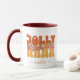 Imagem de tipografia de raia personalizável caneca de café para avós. A design apresenta o texto "Jolly Nana" em tipografia retrô amarela e marrom com elementos florais coloridos e fofinhos. O nome pode ser facilmente personalizado. Faz o melhor presente personalizado para sua avó. Temos mais de 45 canecas de Natal em design retrô, aquarela e tipografia engraçada baseada em nossa coleção que vocês definitivamente amarão. Feliz Natal!