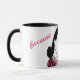 Esta caneca bonita apresenta uma imagem retrô de uma mulher morena com batom vermelho, e o texto em preto e rosa que diz "Porque eu sou a MÃE...é POR ISSO." Uma dessas vezes testou "mãe" dizendo que ainda é útil hoje!
