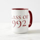 Caneca branca celebrando o evento de 30 anos de reunião, tudo em cores escolares.