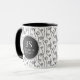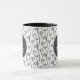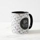 A porta gira em preto e branco, repetindo o padrão. Uma caneca elegante em preto e branco personalizada com seu monograma e nome.