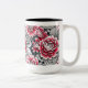 Caneca branca impressa com rosas cor-de-rosa de arte digital com interior preto.