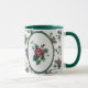 Esta Rosa Cross Stitch Mug apresenta um rosa que recebeu um ponto de cruz de arte digital ou um aspecto bordado.