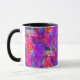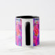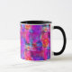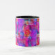 Caneca Rosa da arte, azul, fundo vermelho da textura