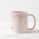 Uma caneca elegante, feminina e de vidro. Rosa dourado pinga, pintura pingando. Plano de fundo de gradiente rosa embebido. Personalize e adicione o seu nome e as iniciais do monograma rosa dourado escuro e letras de cinza.