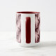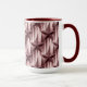 Essa caneca apresenta estrelas rosa de ouro metálicas em um padrão de grade repetido em um fundo listrado. Cada estrela é uma forma geométrica de cinco pontas com superfícies facetadas, criando uma aparência cristalina. As estrelas são posicionadas em ângulo leve, criando um efeito dimensional. A paleta colorida inclui tonalidades de ouro rosa, desde champanhe burgundy até cor-de-rosa. A caneca é uma caneca combo maroon de 15 onças. As canecas são micro-ondas e máquinas de lavar louça seguras. A caneca cumpre os requisitos do FDA para a segurança das comidas e bebidas.