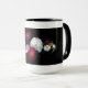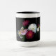 O que poderia ser mais bonito do que um buquê de rosas antiquados? Esta caneca apresenta um design requintado de rosas antigos, cor-de-rosa e branco, ativados por um fundo preto.