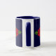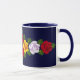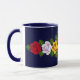 Uma caneca do café ou do chá para seu narrowboat ou sua casa como um lembrete de sua última viagem do canal, com os rosas vermelhos, amarelos e brancos que são pintados tradicional em narrowboats no Reino Unido. A cor azul escuro do fundo pode ser mudada para combinar seu barco.