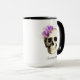 Gótica Floral Crânio personalizado caneca de café. Design apresenta o crânio acentuado com belas rosas roxas sobre fundo branco para um olhar gótico que é elegante e elegante. Personalize esta caneca com o seu nome para torná-la verdadeiramente de uma espécie. Presente perfeito para aqueles que amam estilo gótico e elegância escura.