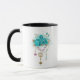 Chave de ouro antiga com rosas de turquesa de tendência, decoradas com folhas de ouro branco e miçangas cor-de-rosa e azuis. Cor agradável. Rosas de turquesa. Ouro branco. Tifania azul.