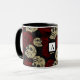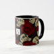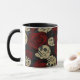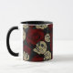 Caneca Rosas Vermelhas & Caveiras Cinza Preto Floral Góti