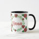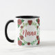 Apresentando uma caneca NANA fofa com rosas vermelhas em uma coroa floral verde.