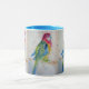 Rosella Parrot no galho Watercolor Mug Blue. Um glorioso design de troca de aquarela. Projetado a partir das minhas pinturas originais de aquarela.